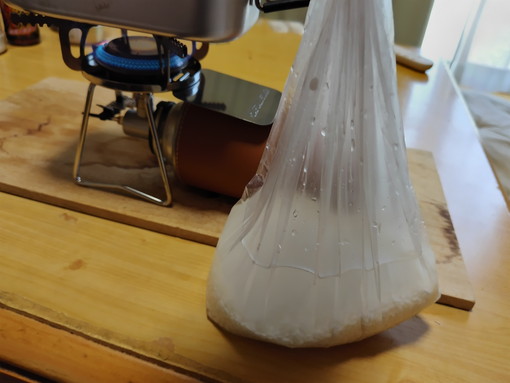 幸い、袋は破れずに済みましたが、鍋底には耐熱皿か蒸し網などを敷いて、袋が鍋底にあたらない工夫が必要です。