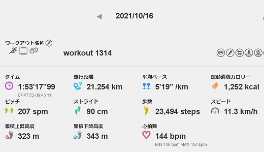 「ひとりハーフマラソン大会」を行って帰宅しました。