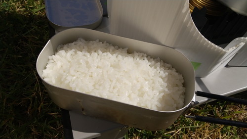 大の大人が、庭でひとりボッチで、メシを炊いている姿は、