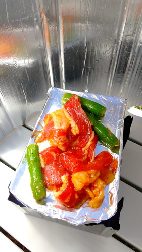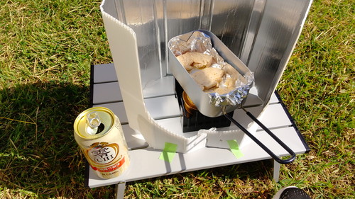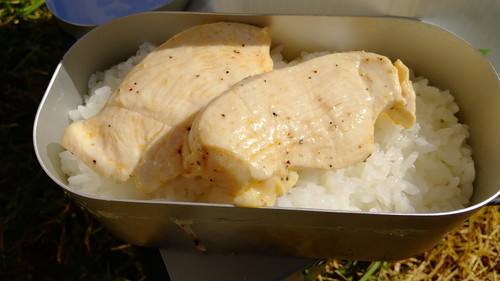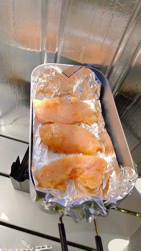 メスティンにホイルを敷き、その上に鶏肉を乗せて焼いていきました。