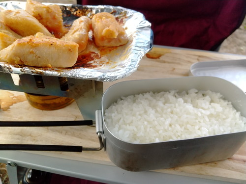ま、この方が風よけがあって、安定した火力で炊けるので、