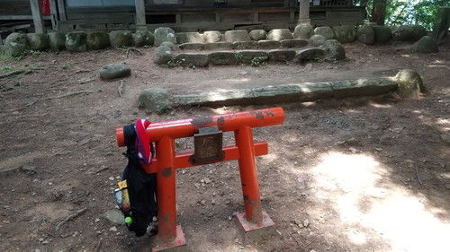 そうこうしていたら、小腹が空いてきたので、ここで昼食をとろうかと思ったんですが、山頂にはいい場所が無く、又、登山者が次から次へと登ってきそうだったので、先ほどの神社に戻りました。