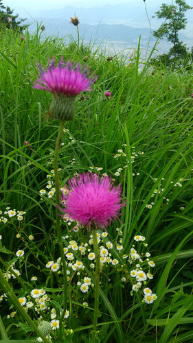 山の花を愛でつつ休憩です。(←アザミだっけ?)