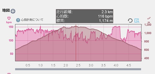 ちなみに登りは歩いていったのに、心拍数は140/bpmほどあり、