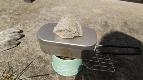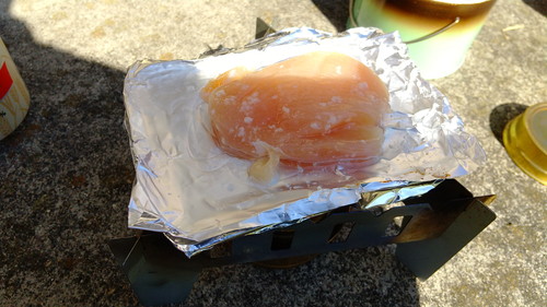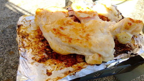 この日は、風もなく穏やかだったので、いつもの五徳に鉄板を乗せて焼いていきます。