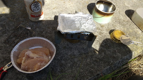 今日は、コンクリートの敷いてある犬走で調理したいと思います。