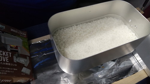 ポケットストーブ&固形燃料で炊飯します。