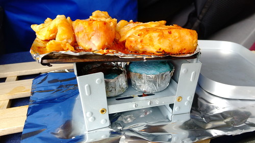 固形燃料で焼いていたら、火力が弱すぎてなかなか焼けなかったw(←ご飯はスタンバイ完了なのに・・・)