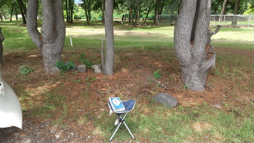 ご飯が炊けるまで、木陰で読書しながら待ちます。(←15分程)