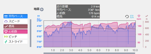 2km通過までは、緩やか~にペースを上げて、3km目からガチンコ。