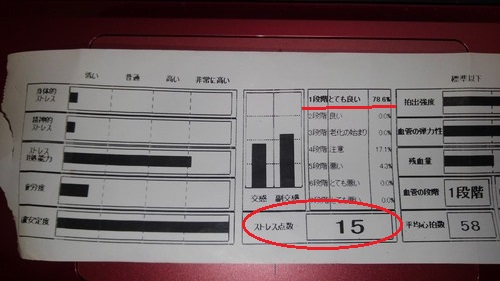 ストレス点数は、100点満点中のたったの「15点」で、「とても良い」だそうですw