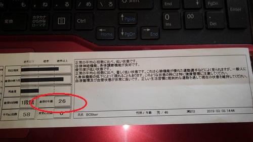 事実、血管年齢は、まさかの「26歳」をたたき出し、心拍数も一般の平均心拍数より非常に低いと出ていました。