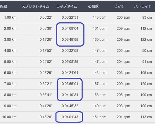 ラストは、下りなのに4分切ってませんが、8kmの上り坂で、完全に脚が終わって、全力を出してもこの程度でした。