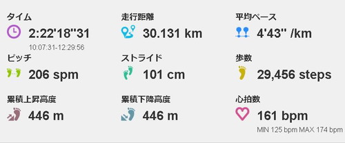 ちなみに当初は、30kmを走れればいいので、給水休憩もありだし、タイムも目標はありませんでした。