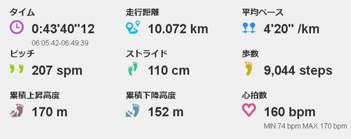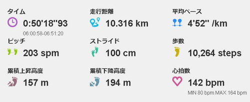 終わってみると、少し早めのジョグペースになっていました。
