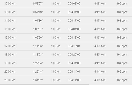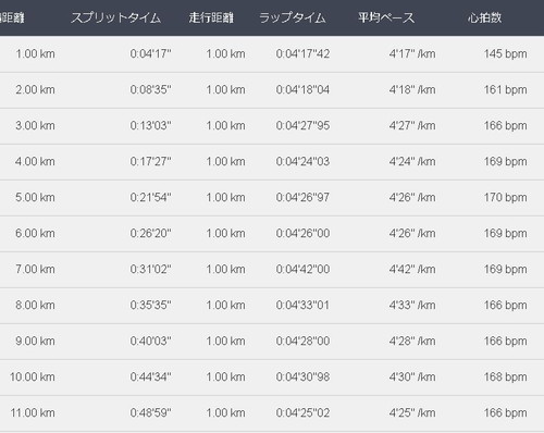 先週のレースの1km毎のラップタイムを載せ忘れたので、今頃ですがUPです。