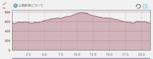 最低標高580mくらいから、800mくらいまで、延々登って下りてきたって感じでした。