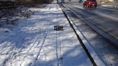 雪が歩道に残っているところもありましたが、数センチ程度の積雪なので、気にせず走って行きました。