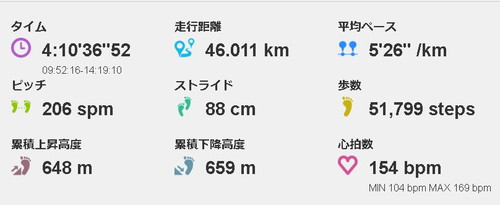 4時間10分もかかりましたが、なんとか46kmを走ることができました。