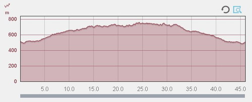 標高500mくらいから出発して、標高750mくらいまで登るので、高低差250mくらいですね。