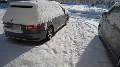 先ずは雪かきをして、履きつぶしたボロシューズを履いて、ランに出かけて行きました。