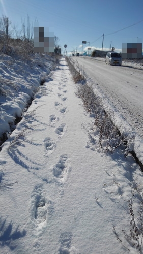 歩道にはがっつり雪が残っており、走りにくいことこの上ないのですが、クロカンの様に足元の悪い状況で走ることは、体幹強化にもつながりそうなので、「これはこれでいいトレーニング」と割り切って走って行くのでした。