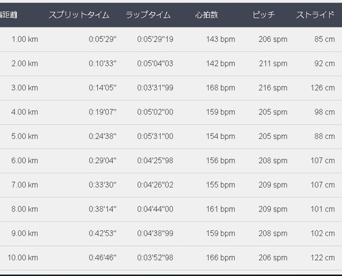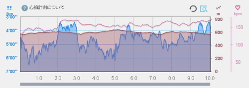 2kmから3kmにかけての1000mが、急にボンと速度も心拍数も膨らんだ波形をしています。