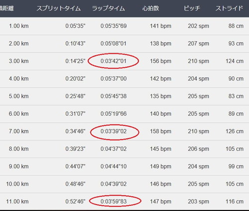 暖かな空気で、一気に体が温まったので、ダメもとで3km目で加速して、