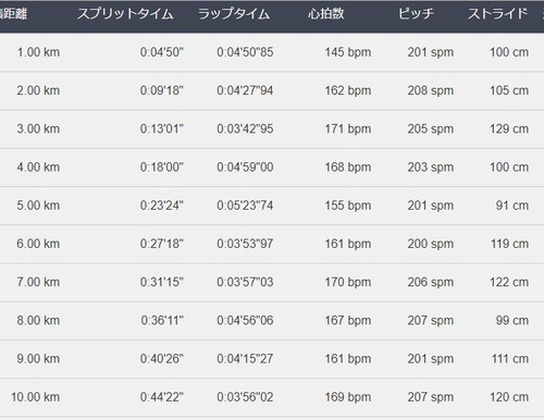 負荷を上げ下げしながら走った10km走は、こんな感じになりました。