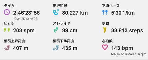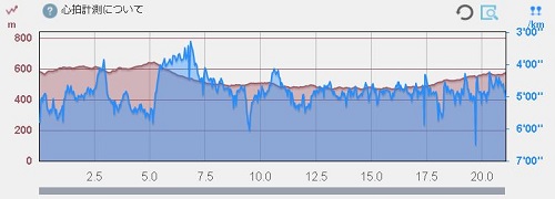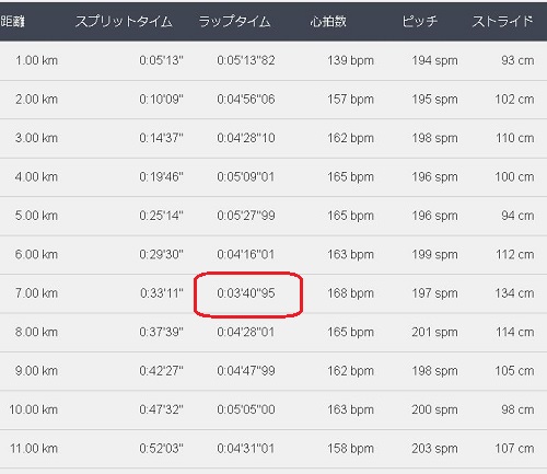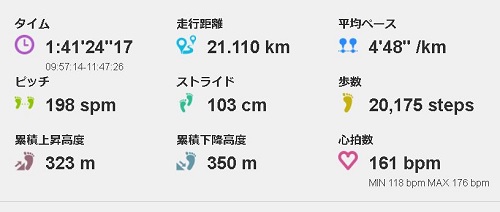 心拍数は、150bpsくらいで走り出して、中盤からは160オーバー。
