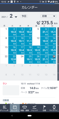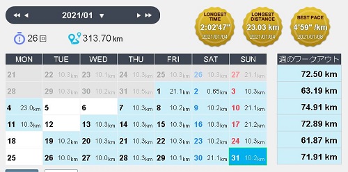 7日間(1週間分)走っていないので、3週分の21日間での距離なので、こんなものなんでしょう。