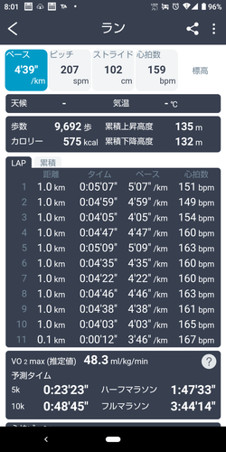 大会も何もないので、モチベがダダ下がりで、ベストペースも「4分59秒」しかありませんw