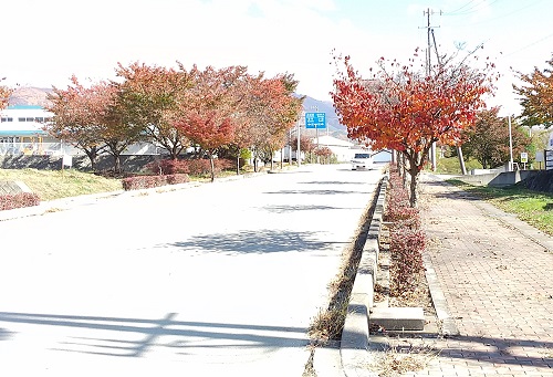奥の山が見事に紅葉・・・・って、あれ?