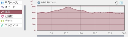 グラフを見ても、11km以降は同じコースのぐるぐる走で、徐々にペースアップしてますね。