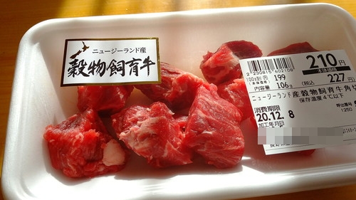 スーパーの牛角切り肉ですねww