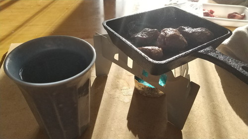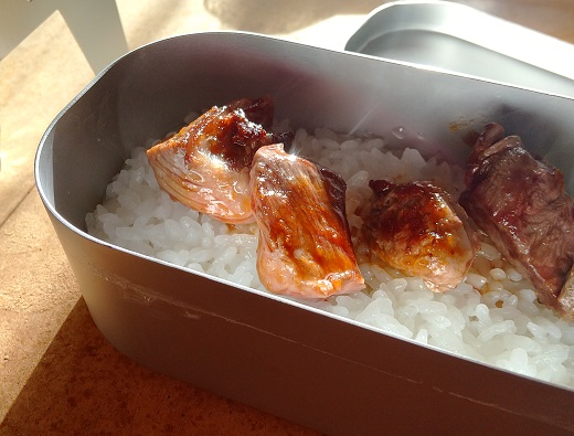 いつも通り、メスティン(飯ごう)で、0.5合の米を焚き、