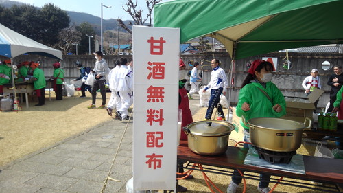 その時、ピンク色の梅マラソンの旗が、あちこちにありました。残念、マラソンも見たかったなあ。