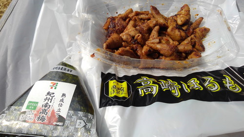 「高崎ほるもん」と、「梅おにぎり」で昼食です!