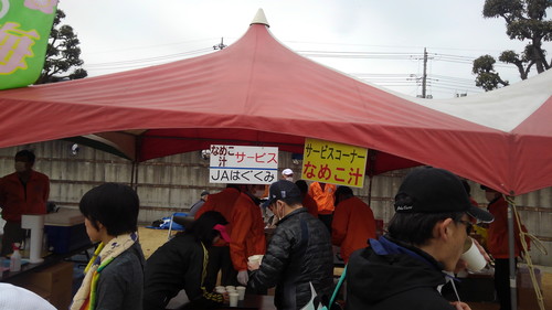 なめこ汁のサービスがあるので、そこでなめこ汁を頂き、「基地」として設営した、Myテントに帰還して、