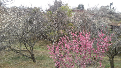 途中でレース中では見る余裕すらなかった梅畑がありましたので、車を停めて「梅の花見」。
