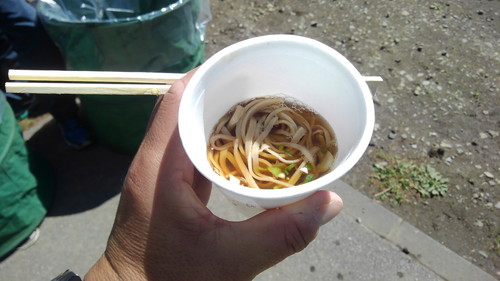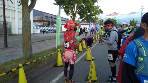 レース中のエイドでは、パンやチョコ、おにぎりに、そば、そしてうどんなど、補給食はいくらでもありますので、エイド中の補給でしのぐことにして、スタート会場に向かいました。