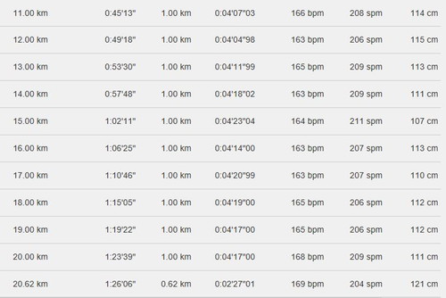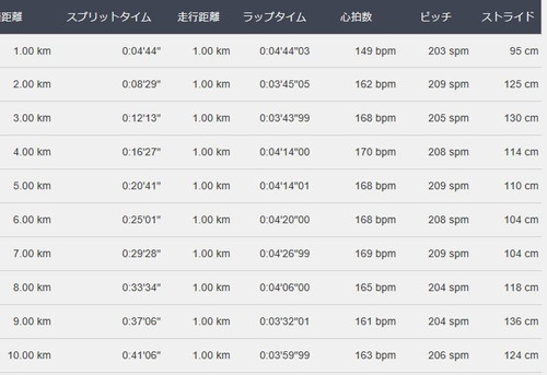 よく見ると、ハーフ(21.0975km)のはずが、時計計測では20.62kmしかないですね。ちなみに私の時計のGPSは、実際の距離よりも若干短めに距離計測をしますが、それにしても500mも計測ミスがあったとは考えられず、実際にこのコースは「300mくらい距離が短かった」ような気がしていました。