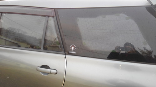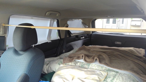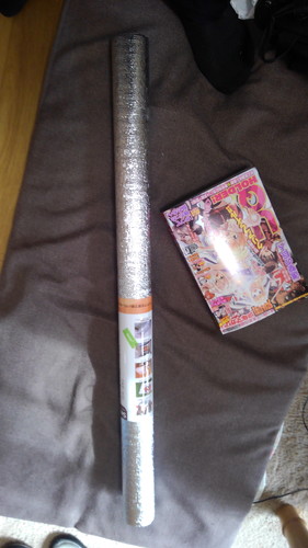 急遽買ってきた銀マットを「目隠し材」&「保温材」という事で、適当にカットして、窓に張り付けた代物ですw