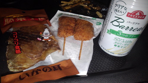 ちなみに、夕飯は途中のスーパーで購入した、「海鮮太巻き」を食べながら来ましたので、