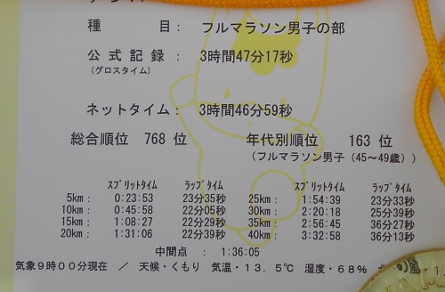 90分切りに62秒足りませんでしたが、練習量から考えると奇跡のタイムだと思っています。