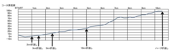 10.5kmあたりの折り返しポイント
