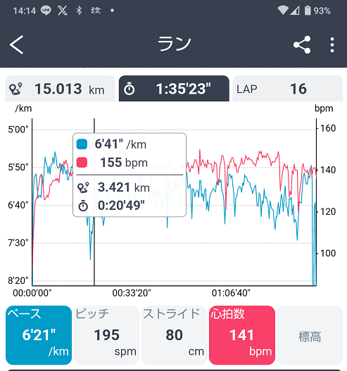 ここからは、脚も重く、キロ6分を超えるスローペースにもかかわらず、心拍数は150/分ほどにも上昇し、きつくてきつくて仕方ありませんでした。