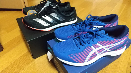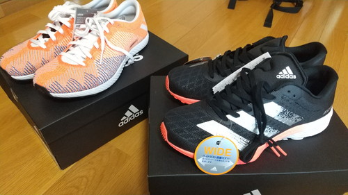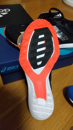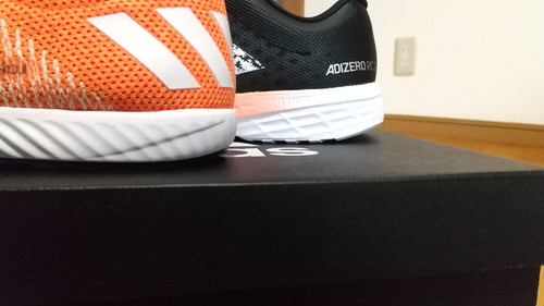 手前が、ADIZERO RC2 で、奥のオレンジが、ADIZERO BEKOJI2ですね。