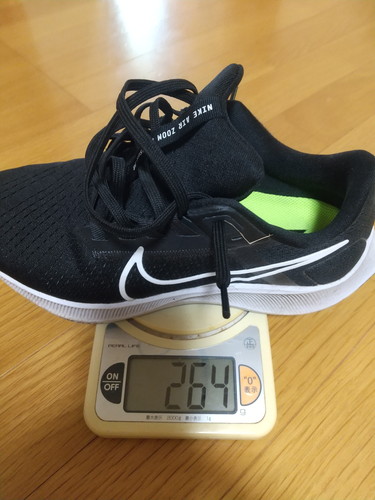 最近のシューズは、200g以下もめずらしくない中で、この重さは致命傷に重い!(←個人の見解です)