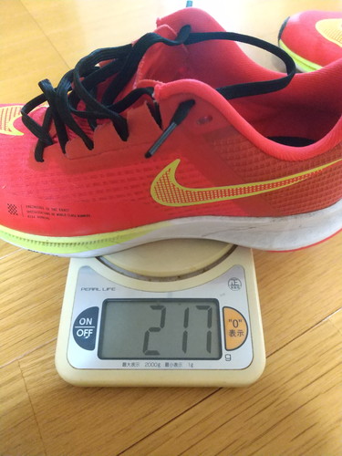 かつての薄底時代のレーシングシューズは、160gだったと記憶しているので、